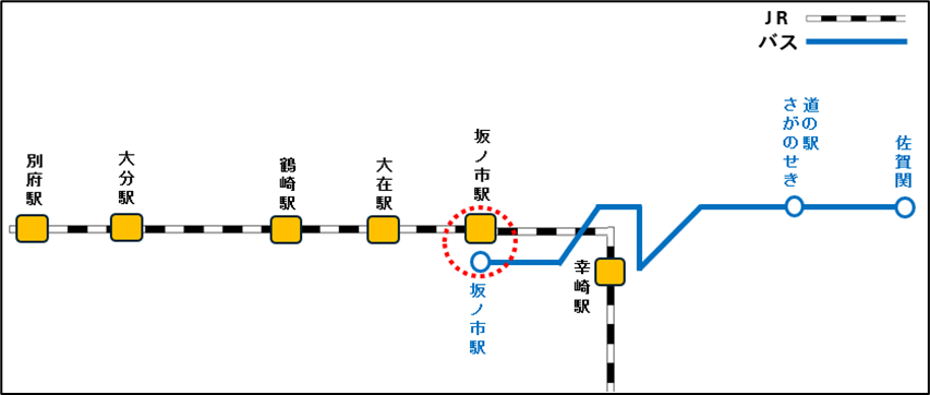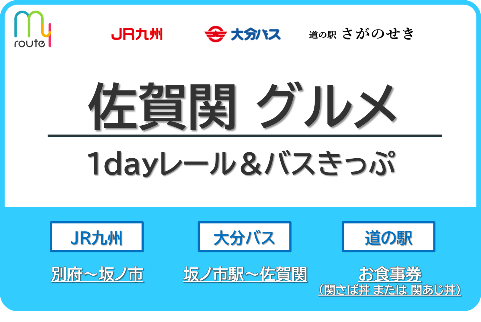 JR 九州(別府駅~坂ノ市駅間)および大分バス(坂ノ市駅~佐賀関間)が 1 日乗り降り自由となり、道の駅さがのせきの食事券(関さば丼または関あじ丼)がセットになったデジタルきっぷです。