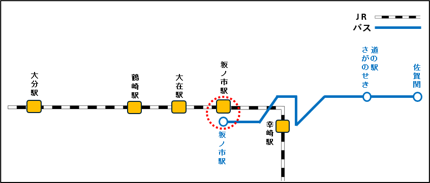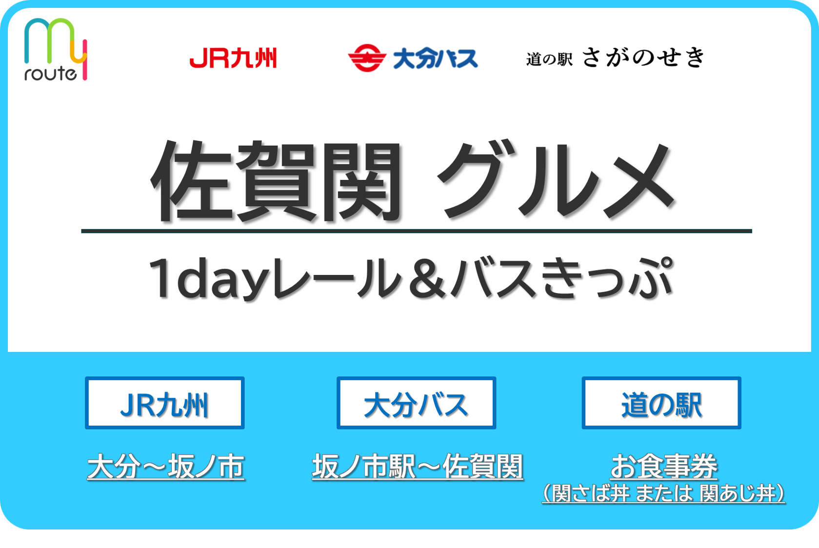 JR 九州(大分駅~坂ノ市駅間)および大分バス(坂ノ市駅~佐賀関間)が 1 日乗り降り自由となり、道の駅さがのせきの食事券(関さば丼または関あじ丼)がセットになったデジタルきっぷです。