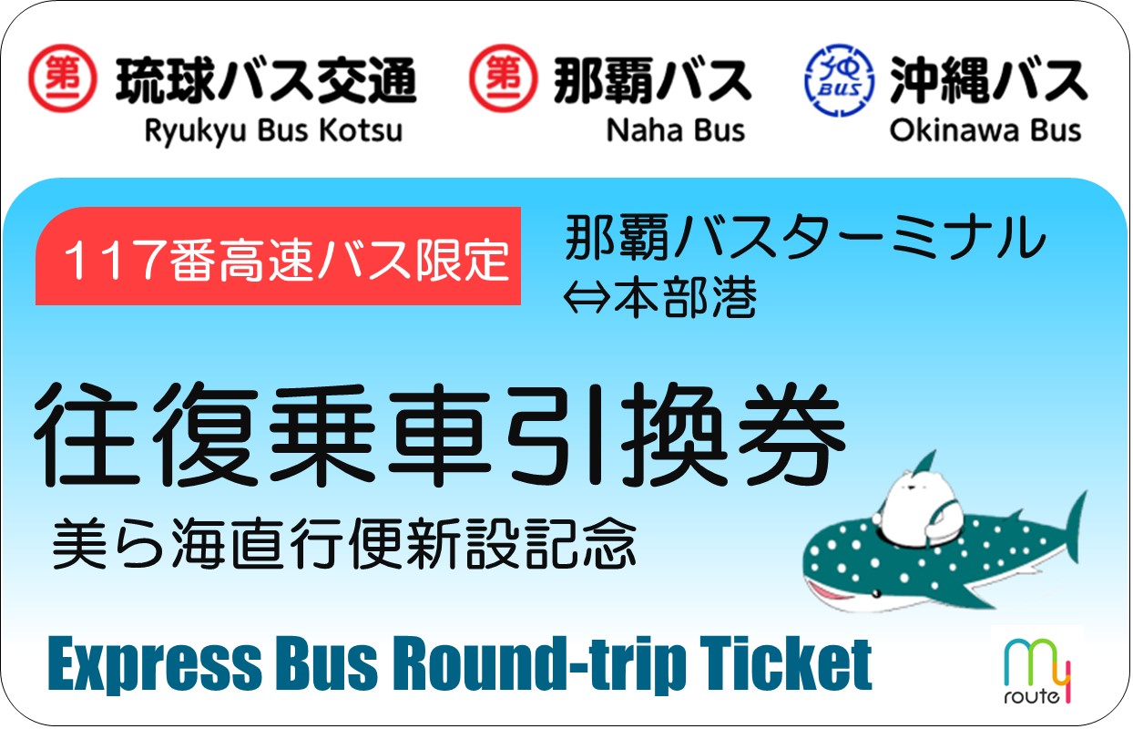 (株)琉球バス交通、沖縄バス(株)および那覇バス(株)が運行する系統117番高速バス(美ら海直行)限定で使用できる往復乗車券の引換券です。