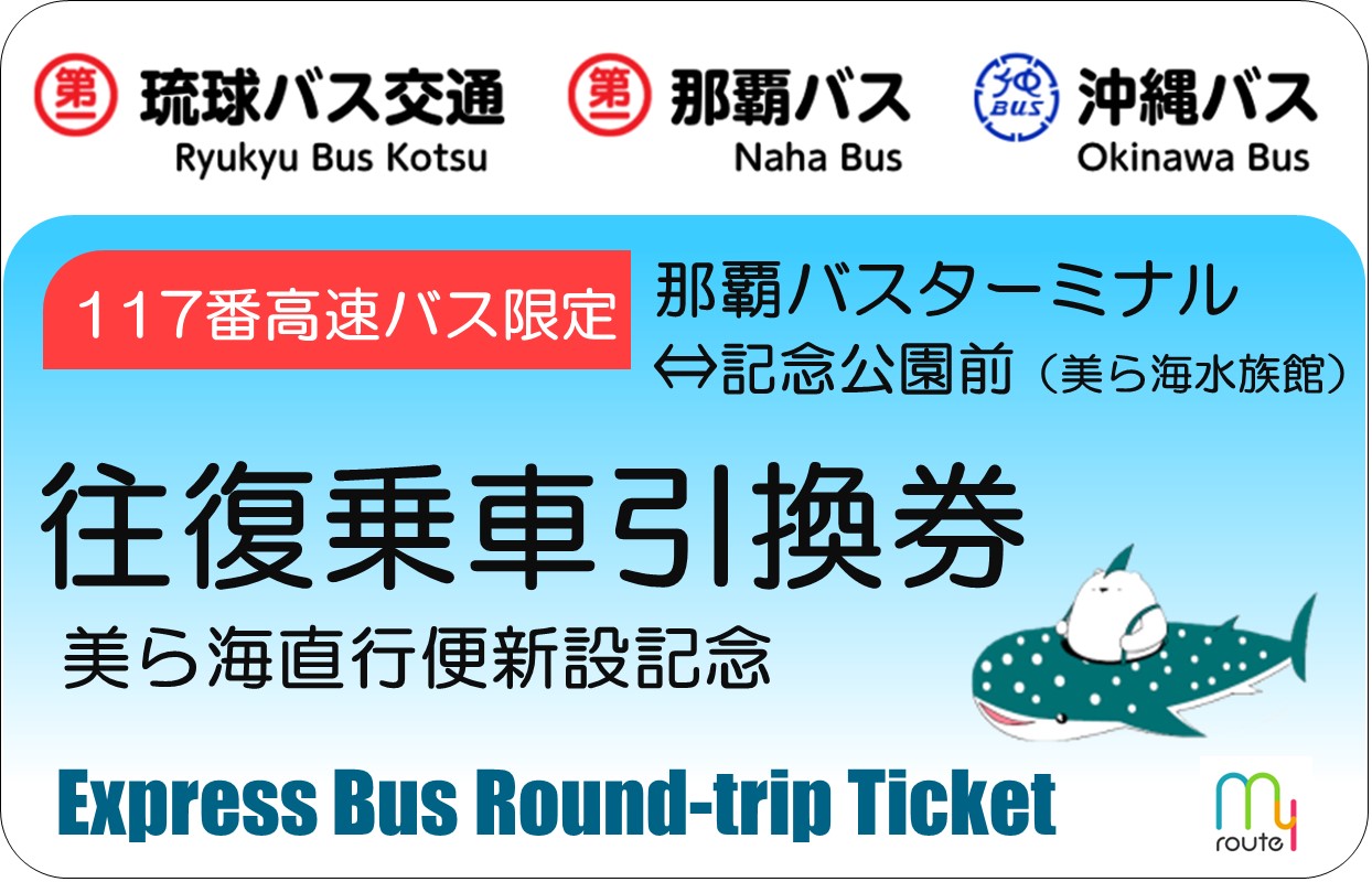 (株)琉球バス交通、沖縄バス(株)および那覇バス(株)が運行する系統117番高速バス(美ら海直行)限定で使用できる往復乗車券の引換券です。